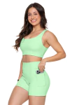 O short possui bolsos laterais funcionais, perfeitos para carregar celular ou itens essenciais com segurança. A cintura super alta e o cós invisível frontal garantem um ajuste firme, valorizando a silhueta e proporcionando conforto durante qualquer movimento.